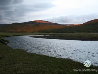 А теперь нажмите на треугольник, чтобы вернуть сайт на место, и, посетив другие страницы, увидеть новые красивые пейзажи Эвенкии!