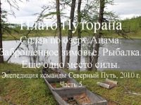 После 5-часового сплава по озеру Анама, мы добираемся до заброшенного зимовья на противоположном конце. Здесь один из наших участников провел как-то 9 месяцев, забытый в тайге.
