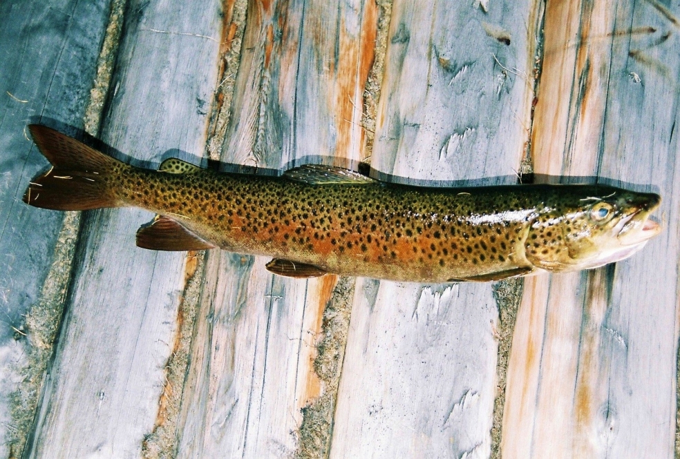 Ниже переката я взял первого ленка. Вода прозрачная, глубина совсем небольшая. Рыбу видно хорошо, торчащий из воды спинной плавник при погоне за блесной как ножом режет воду. По разводам легко определить, когда будет атака, и подготовиться. Берётся ленок резко и уверенно, сходы практически исключены. Обитает он в основном в реках с быстрым течением, а такая рыба, как правило, сильная и доставляет при вываживании много удовольствия. Не себе, конечно, а нашему брату - рыбаку.
