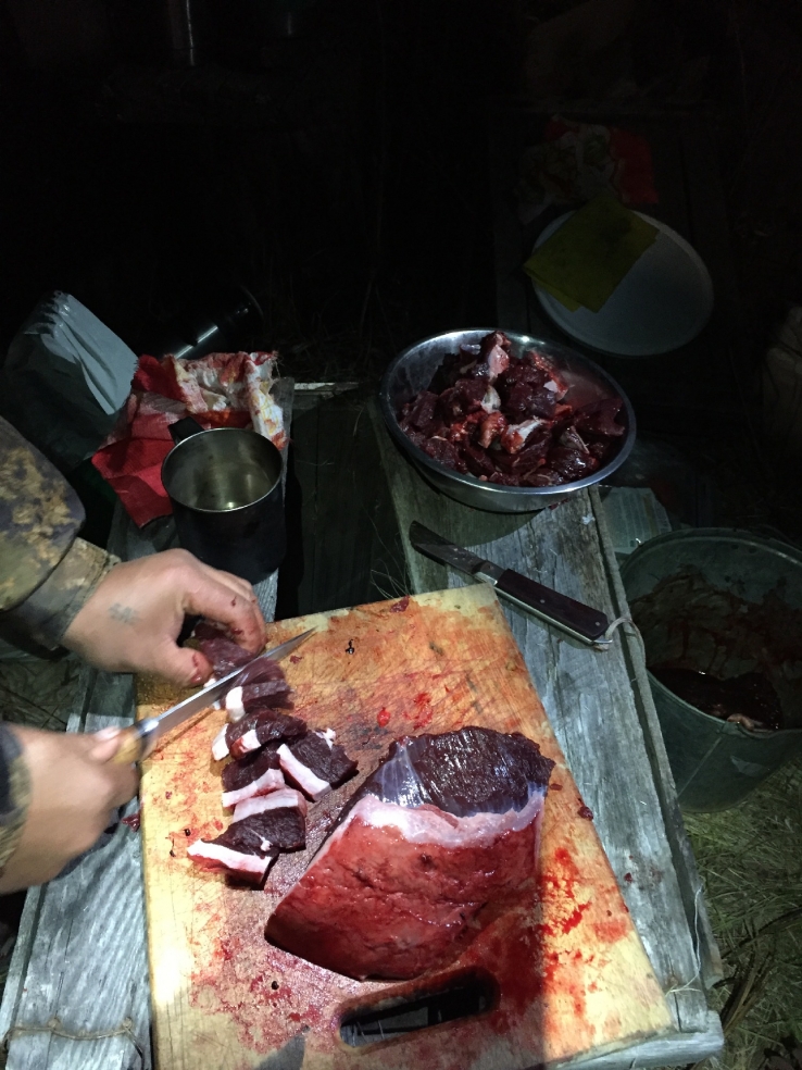 Потом был первый ужин, - то самое время, когда цивилизация начинает отпускать. Традиционное подношение духам места. Надо сказать, они проявили благосклонность – дали все, чего мы просили. И рыбы, и дичи, и погоды. Так только, для порядка, примораживали по утрам, чтоб гости не забывали, где они находятся. А днем солнце жарило так, что некоторые аж пообгорали. Сентябрь в тех краях, на минуточку, - глубокая осень.
