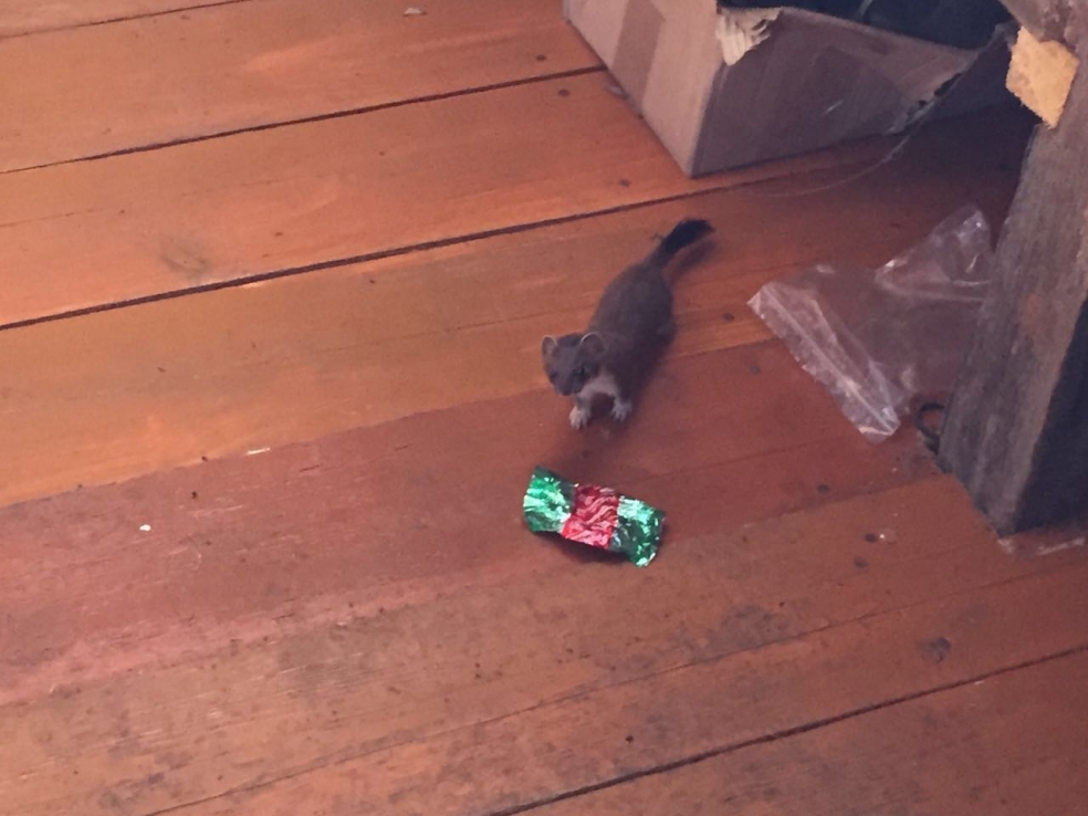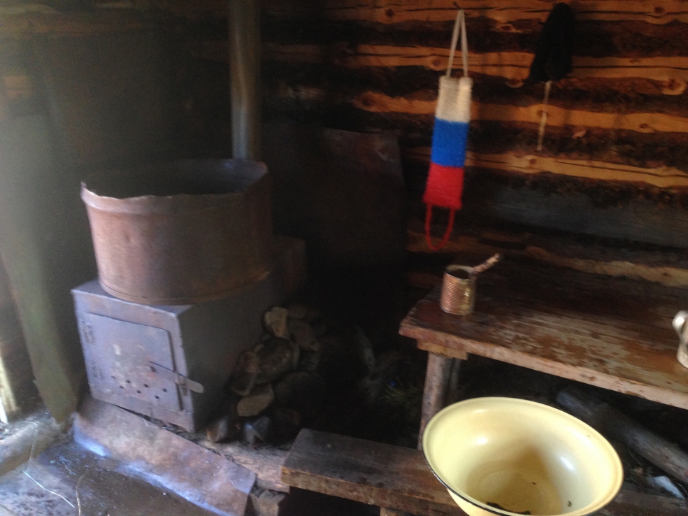 На охотничьем зимовье, где мы гостили уже перед выброской домой, нас регулярно навещал местный комендант – маленький горностай, который там вроде как вместо кошки. Там же была и баня, и какава с чаем.