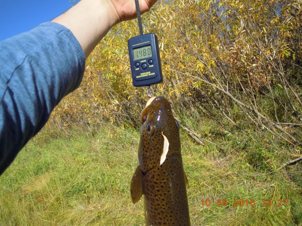 Если вкратце по рыбе: количество щук посчитать невозможно. Только помнится, что самая крупная была на 8150. Ниже двушки, вроде, и не было вовсе. Щука тамошняя, кстати, гастрономически – достойнейшая рыба, не то, что шнурки из стоячей воды средней полосы. Ленок в среднем килошный. Но вот то, что хариуса меньше 500г в притоках не ловили – это удивило. Для маленьких речек это необычно. Да и сам царь порадовал – из одиннадцати добытых тайменей самый меньший был на 9 кг, а самый крупный – на 16. Тем более что большинство из нас до этой поездки тайменя не лавливали. Отпускать такую рыбу – отдельное удовольствие.