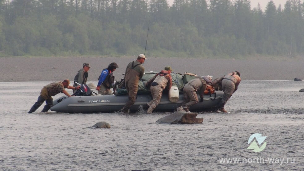 Слив с переката, крутой поворот направо – и через несколько сотен метров началась совсем другая река. Теперь о комфортном путешествии под мотором можно было забыть. Вода неслась под горку, уходя то направо, то налево. Перекат на перекате, мелководные шиверы, а вот плесы коротки – регулярно приходилось выпрыгивать из лодок, чтобы протащить их через камни. Понятно, почему этот участок не посещаем уже несколько лет. Зато быстротекущая вода собрала много рыбы.