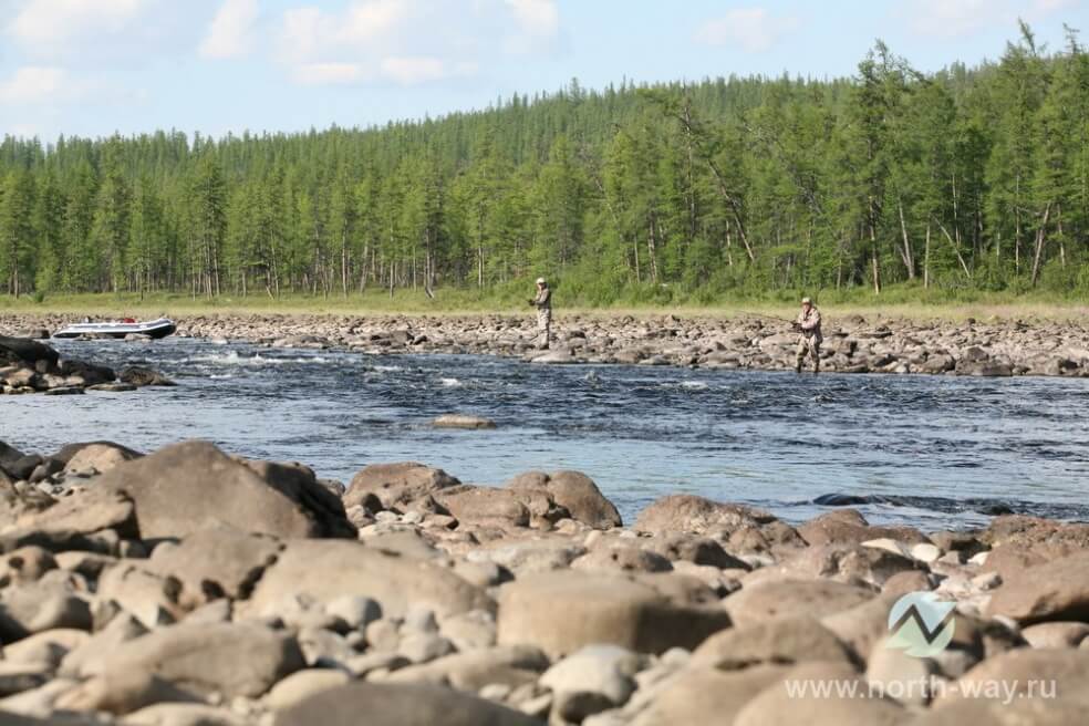 В паре сотен метров ниже по течению сразу за излучиной образовалась единственная на участке ямка – не слишком большая, но правильная – слив с переката, крупные камни. Первым туда дошел Анатолий Фомичев, сразу же выловивший таймешонка и солидного, по меркам Кочечума, ленка.