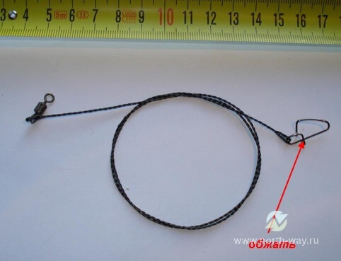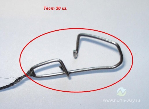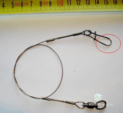 Самодельные поводок из тросика диаметром 0,3 мм грубоват, но он надежен на 100%. Я использую его при ловле крупных щук и когда есть вероятность поклевки крупного тайменя. Поводок, который вы видите на фото, неоднократно бывал в деле – это видно по потертому карабину, а ему хоть бы что!